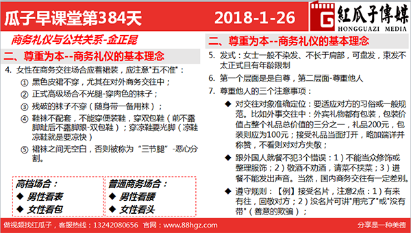4. 女性在商務(wù)交往場合應(yīng)著裙裝,應(yīng)注意“五不準(zhǔn)”:
